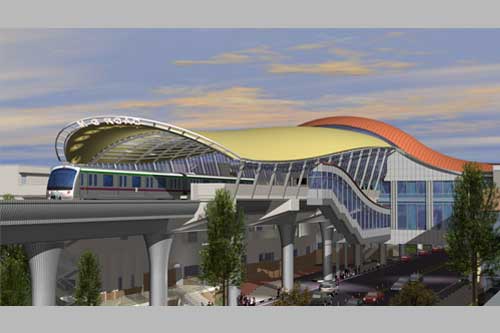 What inspired our design team the most was the concept of "flight" and movement of a bird. Taking this further the M G Road station was evolved out of the form of a bird. The wings are the parts where the train moves. The body is where it is above the road. The tail is where it connects with the alighting part of the station across the road. When seen from a distance it does appear like a bird.